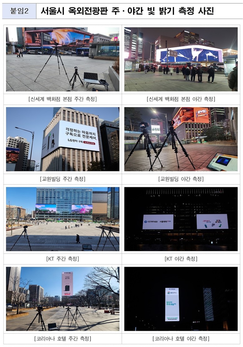 - ‘옥외전광판 빛 밝기 권고기준(안)’… 실측 조사 결과 토대로 주간 밝기 7,000cd/㎡ 이하
