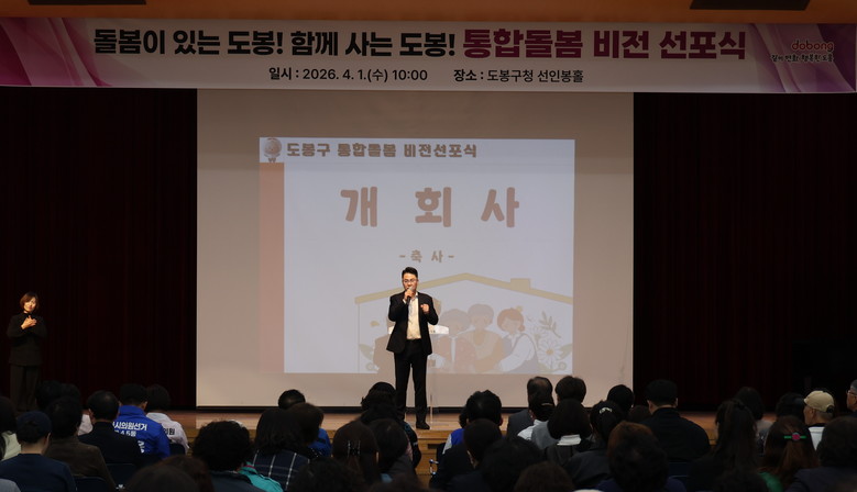 구는 4월 1일 도봉구청 선인봉홀에서 통합돌봄 비전 선포식을 열고 지역 중심의 돌봄체계 구축 의지를 대내외에 알렸다.