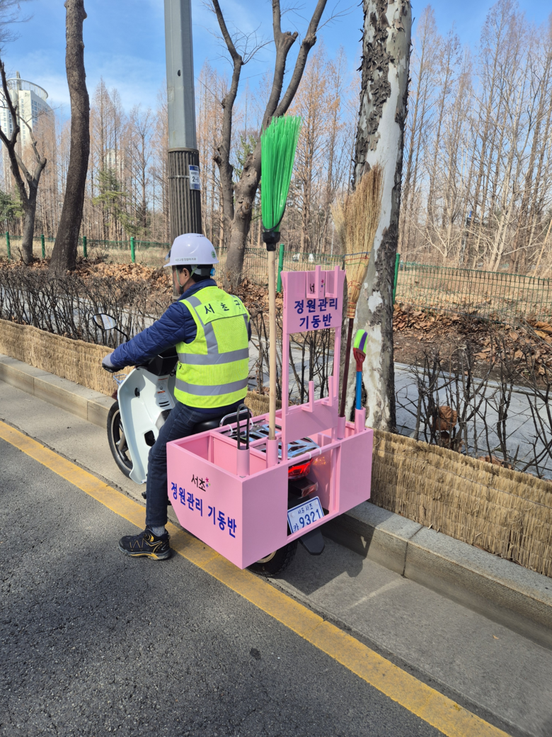관리 대상은 신반포로 등 6개 구간, 총 25.5km에 달하는 정원형 녹지다. 2명으로 구성된 기동반은 각 3개 구간을 전담하고, 이륜차를 활용해 주 2~3회 이상 순찰하며 세심한 관리에 나설 예정이다. 혹서기 관수, 은행 열매 처리, 월동 작업 등 계절별 여건에 따라 운영 일정은 탄력적으로 조정할 계획이다.