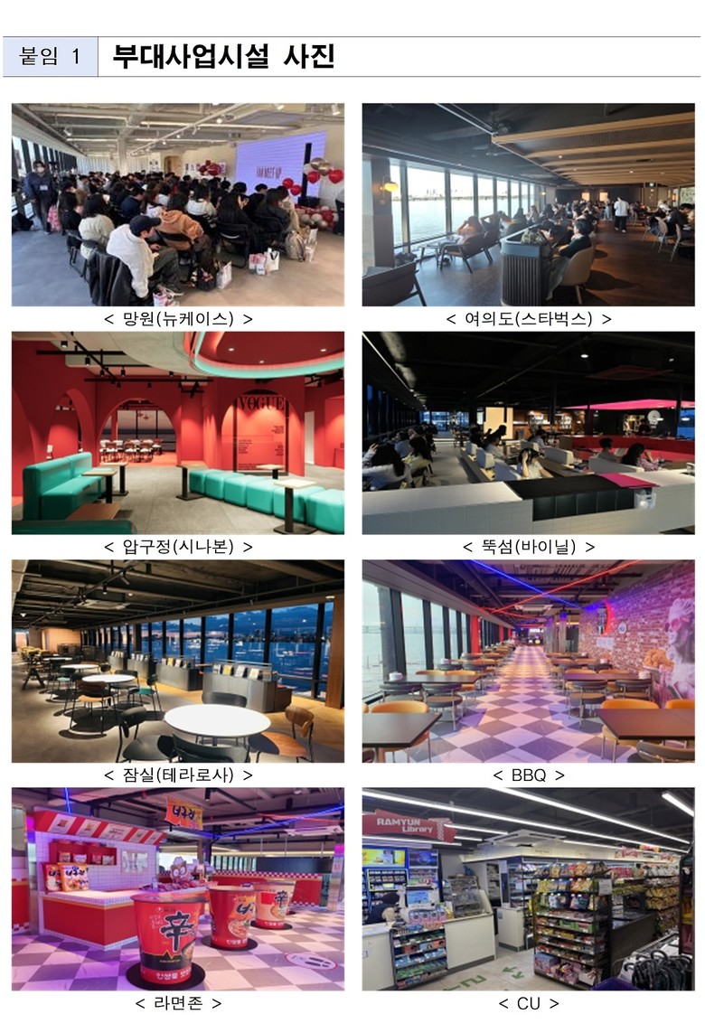 ㈜한강버스가 운영 중인 선착장 내 부대사업도 한강버스를 탑승하고자 선착장에 방문하는 시민들이 증가함에 따라 호황을 누리고 있다.