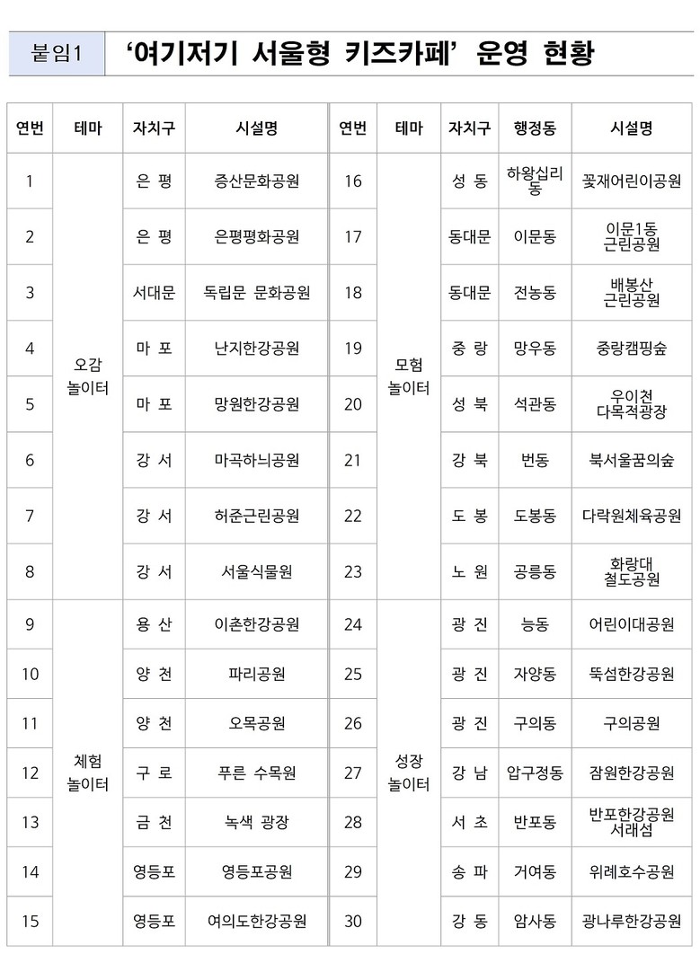 - 주말이면 야외에서 만나는 ‘여기저기 서울형 키즈카페’ 11일(토)부터 시작…4~6월, 9~11월 운영